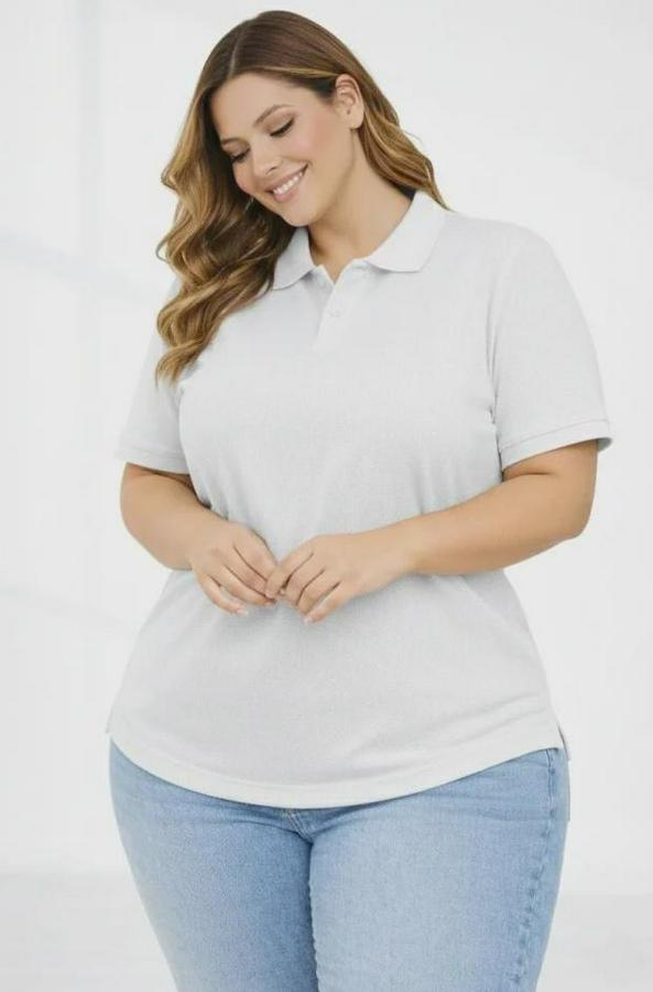 Pike Kumaş Düğmeli Yaka Battal Büyük Beden Günlük Kısa Kol Tişört T-shirt - Beyaz