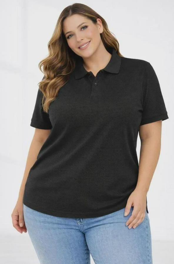 Pike Kumaş Düğmeli Yaka Battal Büyük Beden Günlük Kısa Kol Tişört T-shirt - Siyah