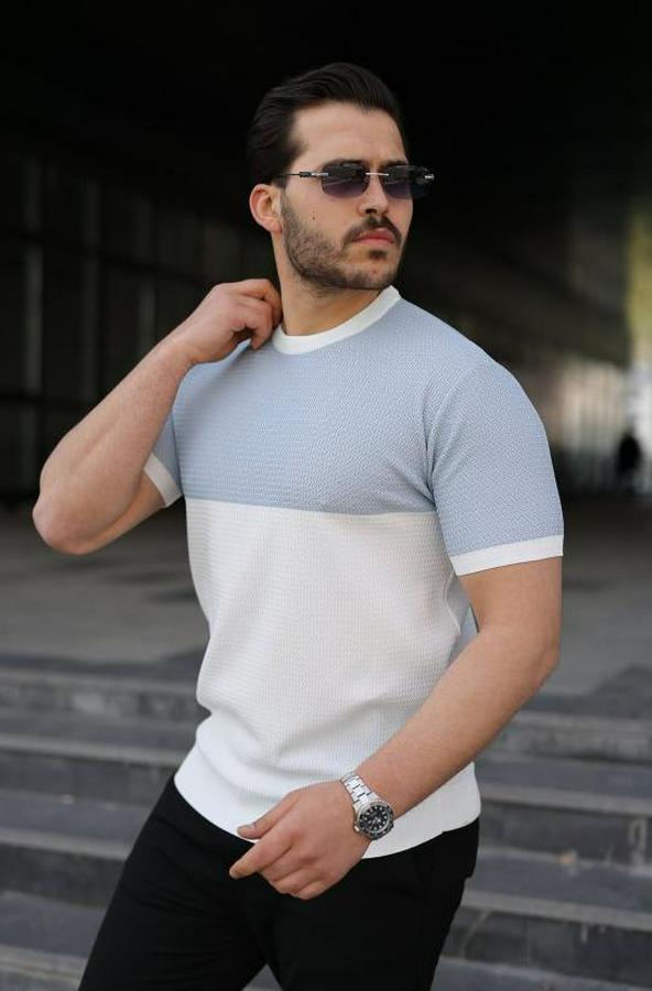 Renk Bloklu Bisiklet Yaka Kısa Kollu Triko Tişört