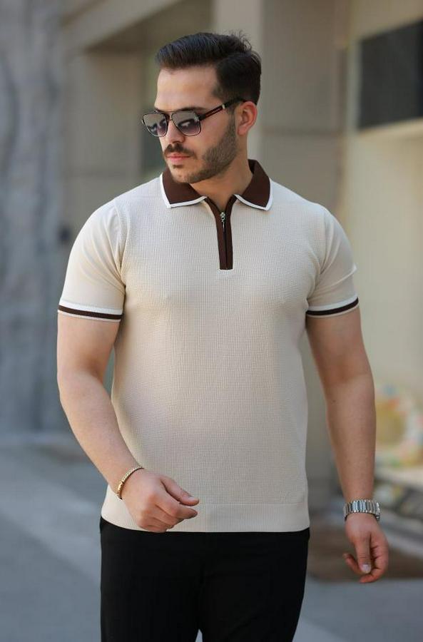 Erkek Renkli Yaka Kısa Kollu Tişört