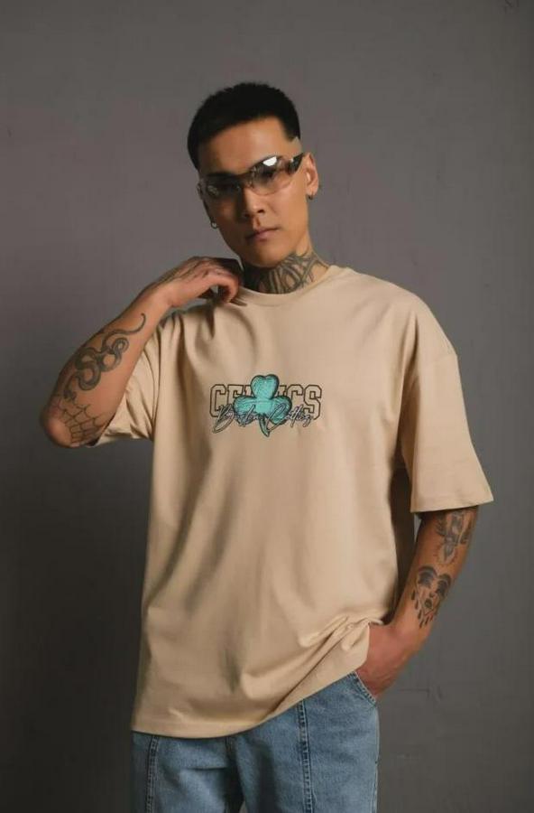 Erkek Sırt Baskılı T-shirt - Bej