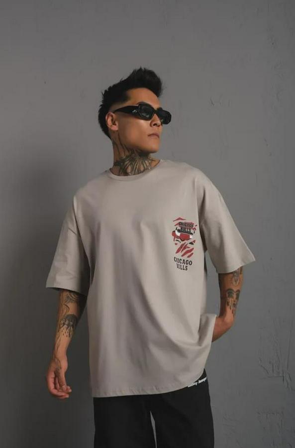 Erkek Sırt Baskılı A Kalite Oversize T-shirt - Gri