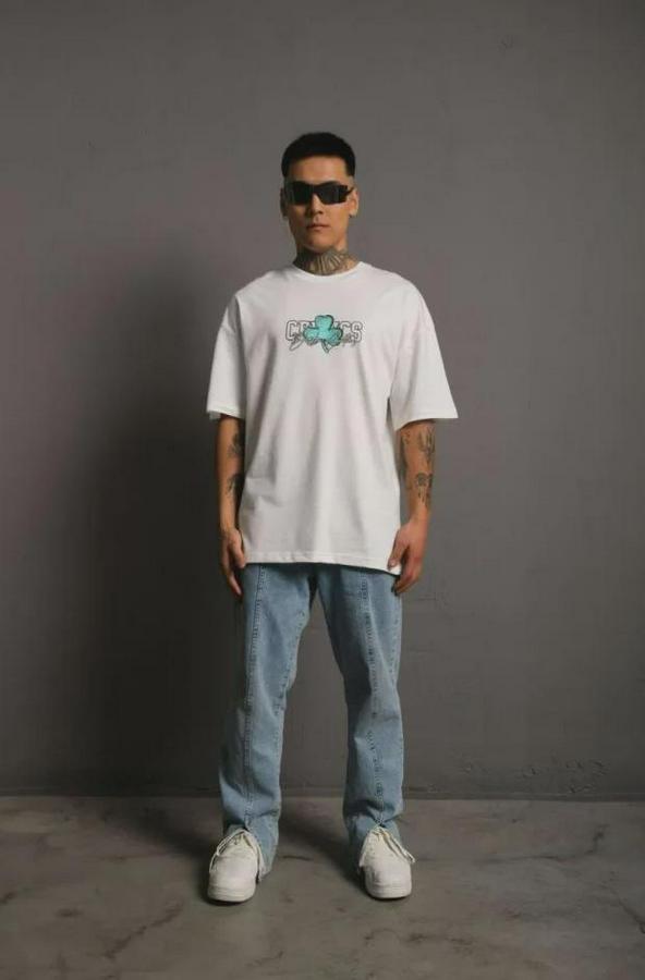 Erkek Sırt Baskılı T-shirt - Beyaz