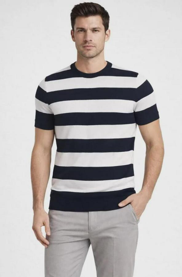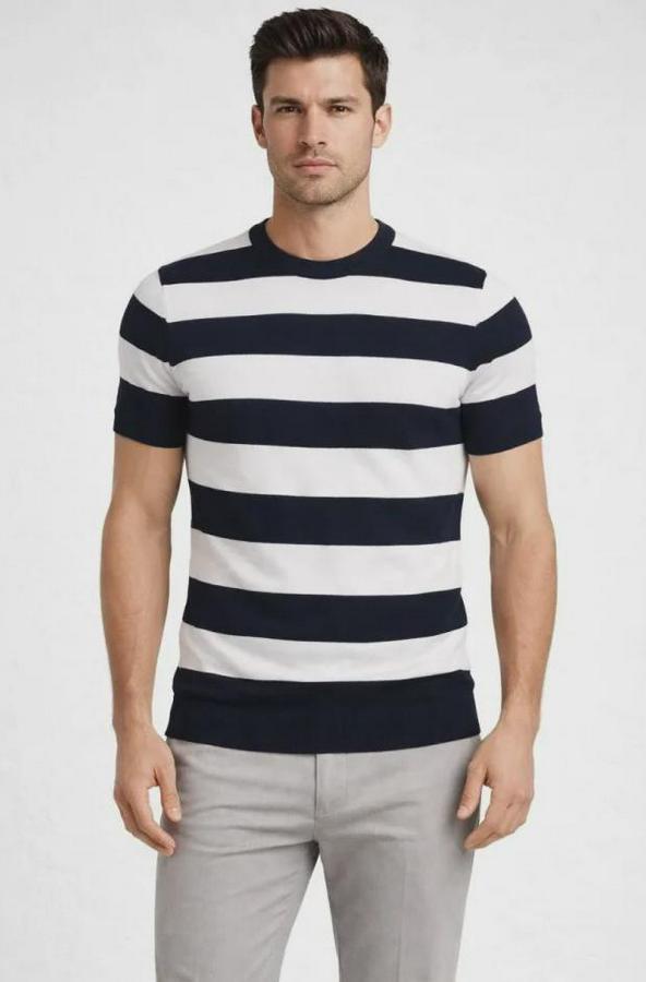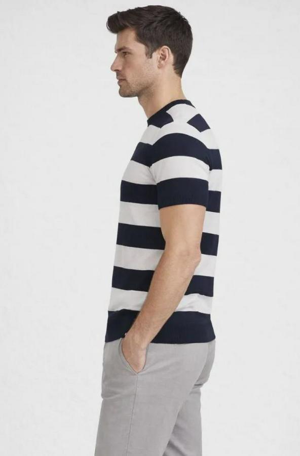 T-Shirt Çizgili Triko Dokuma Bisiklet Yaka Tişört