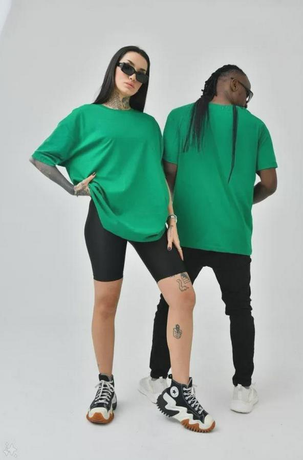 Unisex Basic Bisiklet Yaka Oversize T-Shirt - Yeşil