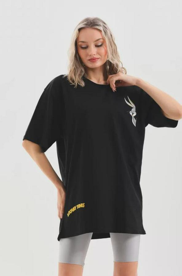 Unisex Baskılı Oversize T-Shirt - Siyah