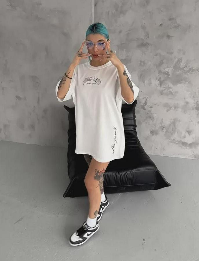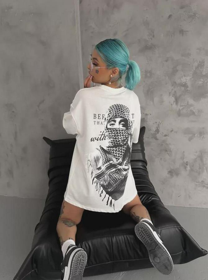 Unisex Baskılı Oversize T-Shirt - Beyaz