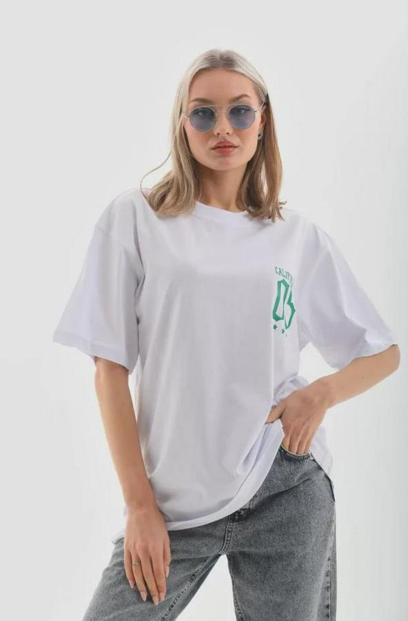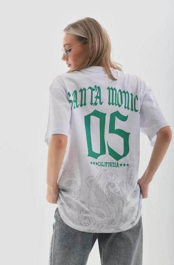 Unisex Baskılı Oversize T-Shirt - Beyaz