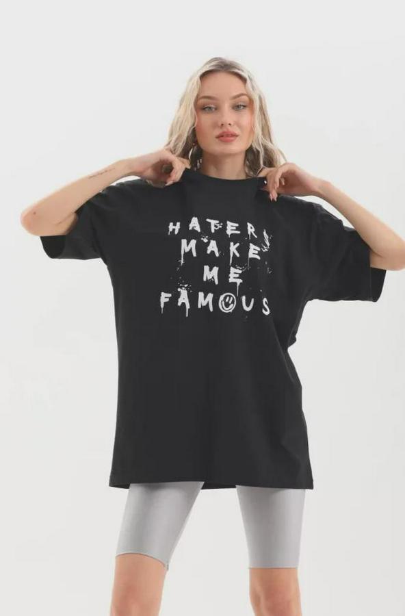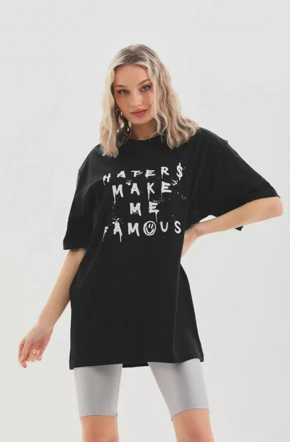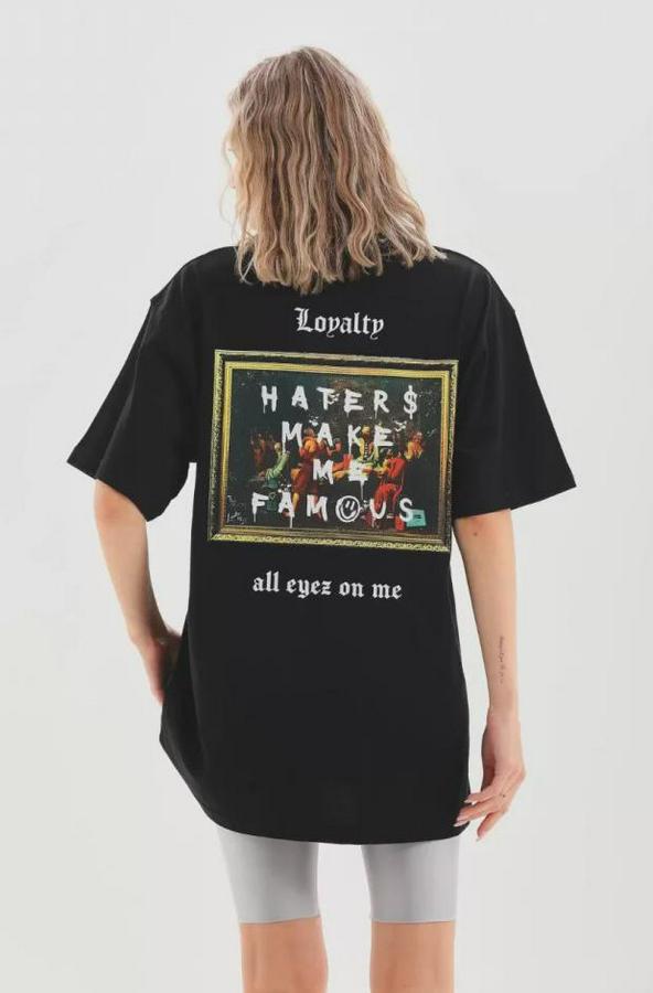 Unisex Baskılı Oversize T-Shirt - Siyah
