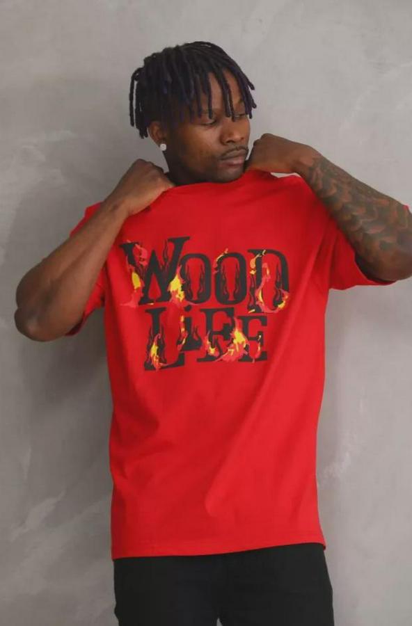 Unisex Baskılı Oversize T-Shirt - Kırmızı