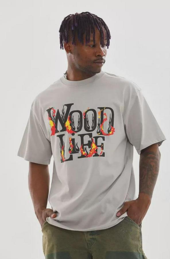 Unisex Baskılı Oversize T-Shirt - Gri