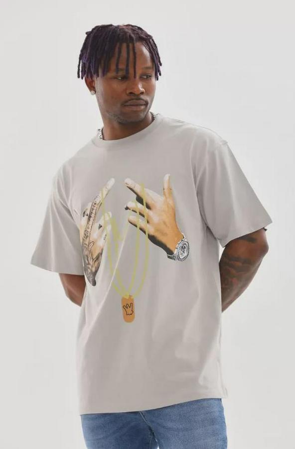 Unisex Baskılı Oversize T-Shirt - Gri