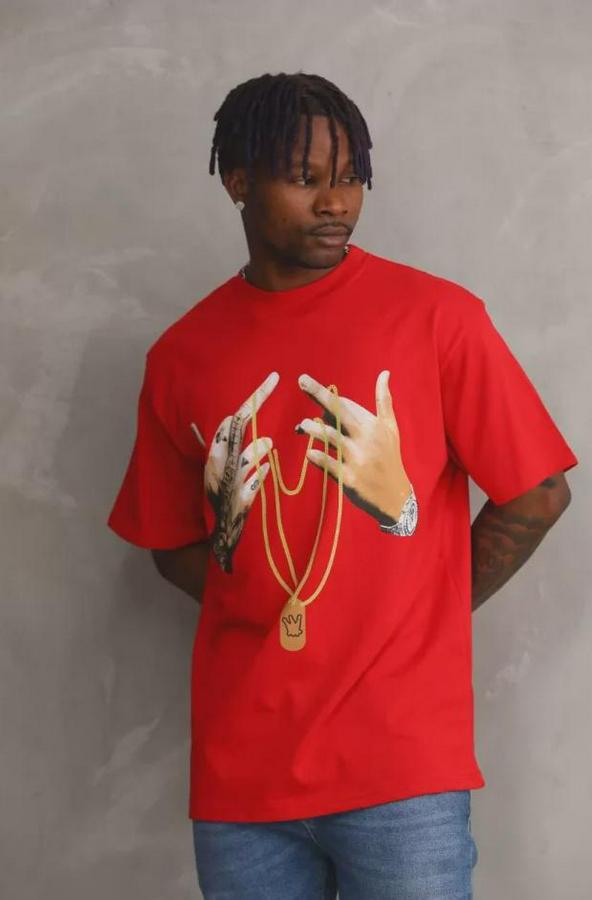 Unisex Baskılı Oversize T-Shirt - Kırmızı