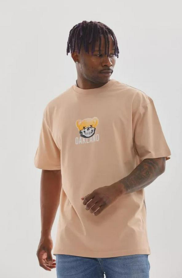 Unisex Baskılı Oversize T-Shirt - Bej