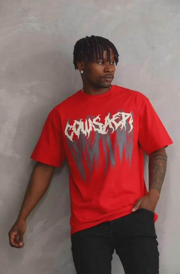 Unisex Baskılı Oversize T-Shirt - Kırmızı