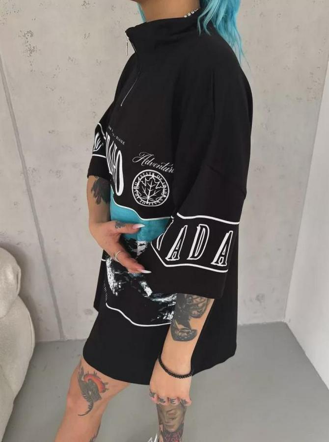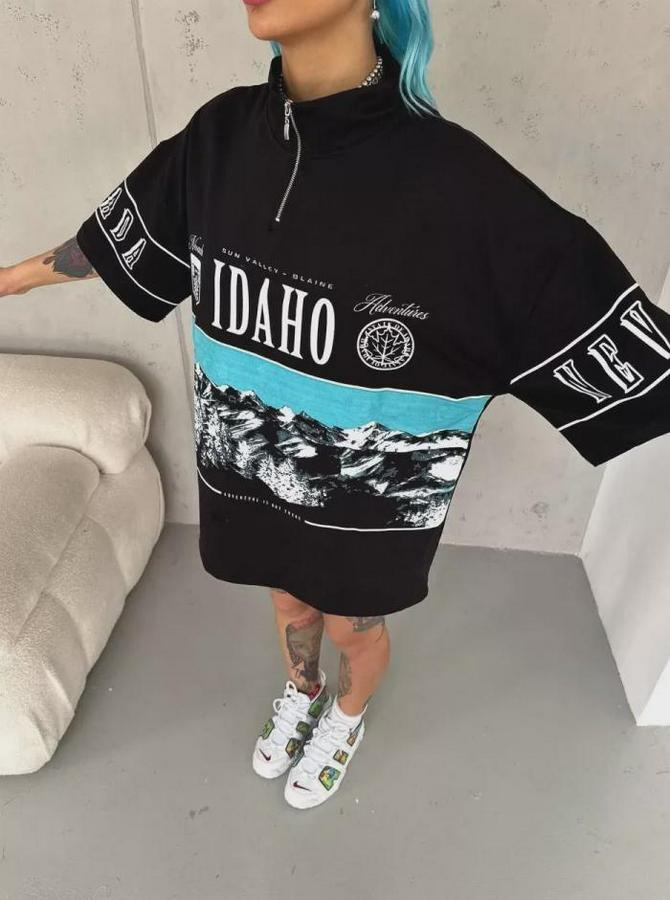 AnasayfaTüm ÜrünlerÜst GiyimT-ShirtUnisex Baskılı Yarım Fermuarlı T-Shirt