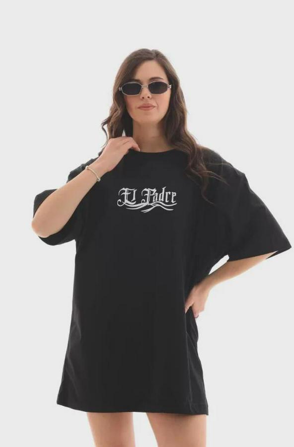 Unisex Bisiklet Yaka Baskılı Oversize T-Shirt - Siyah