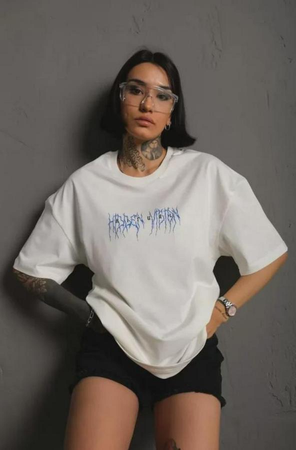AnasayfaTüm ÜrünlerÜst GiyimT-ShirtUnisex Bisiklet Yaka Baskılı Oversize T-Shirt