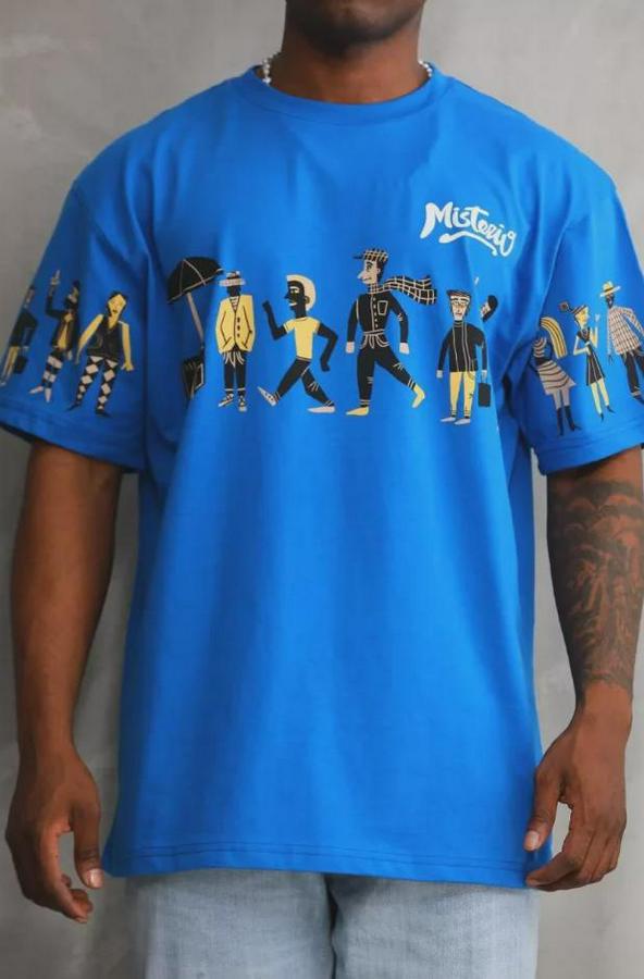 Unisex Bisiklet Yaka Baskılı Oversize T-Shirt - Mavi