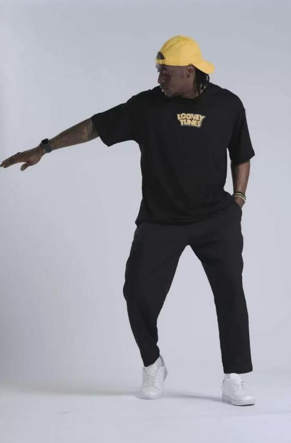 Unisex Bisiklet Yaka Baskılı Oversize T-Shirt - Siyah