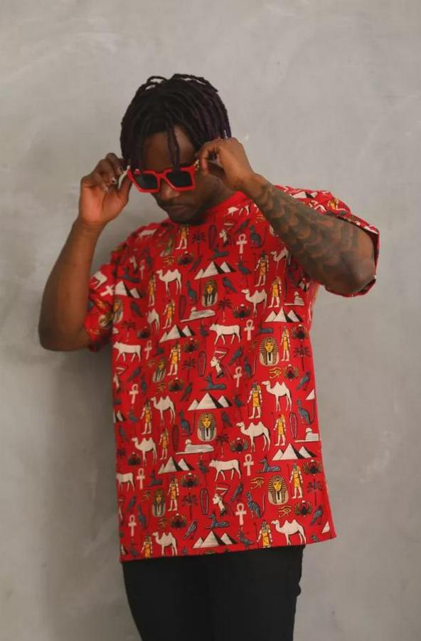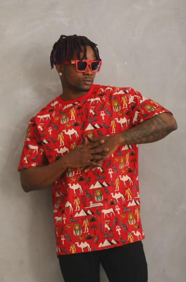 Unisex Oversize Baskılı Bisiklet Yaka T-Shirt - Kırmızı
