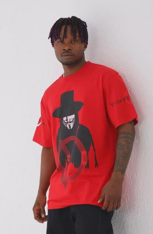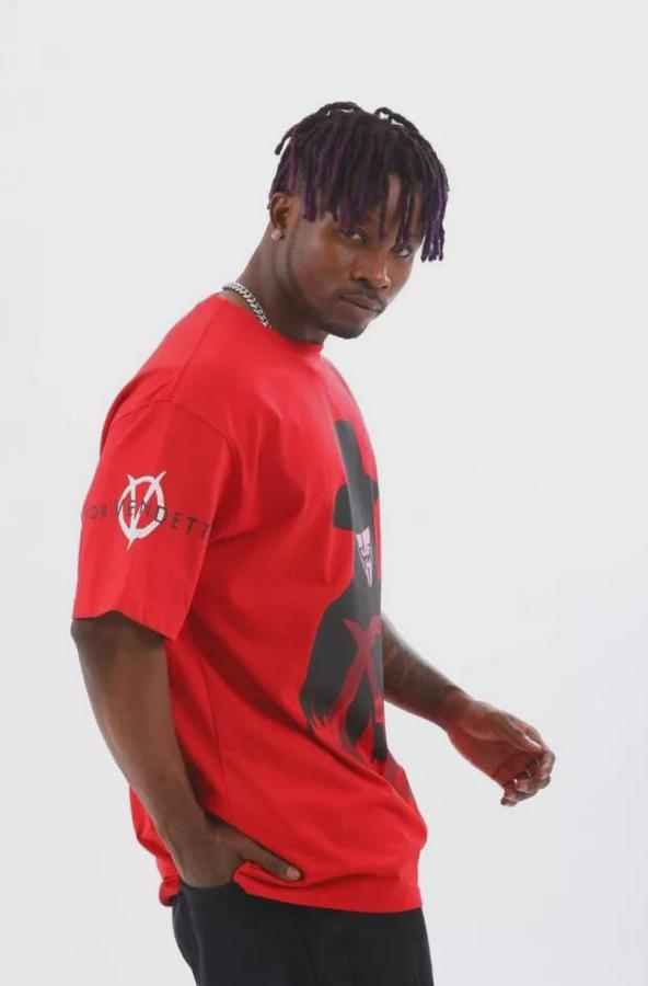 Unisex Oversize Baskılı Bisiklet Yaka T-Shirt - Kırmızı