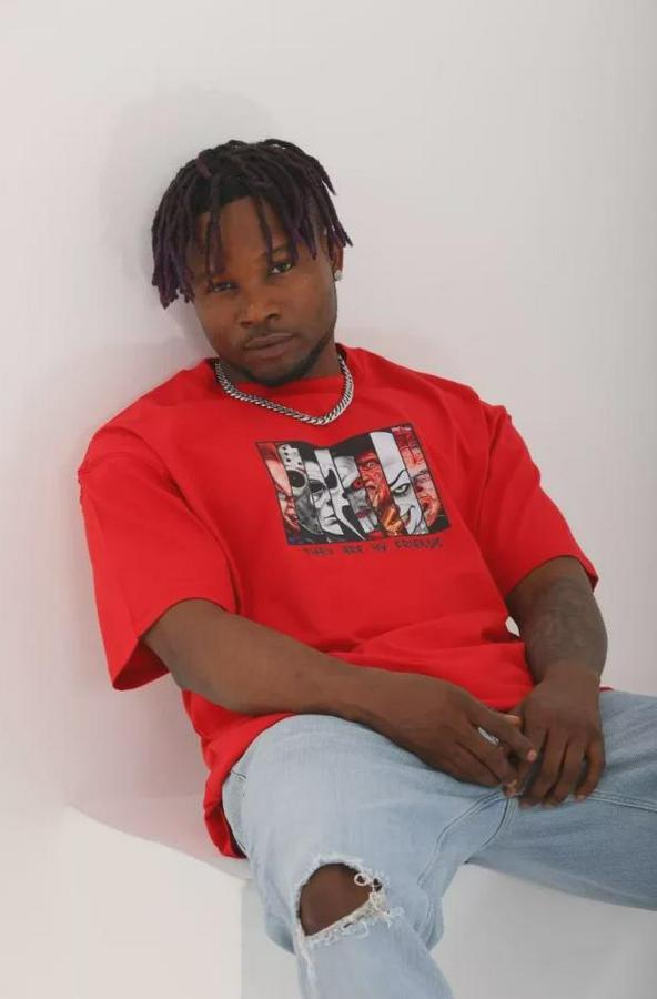 Unisex Oversize Baskılı Bisiklet Yaka T-Shirt - Kırmızı