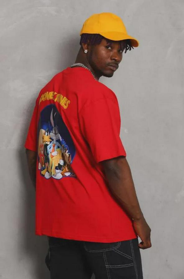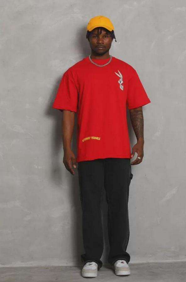 Unisex Oversize Baskılı Bisiklet Yaka T-Shirt - Kırmızı