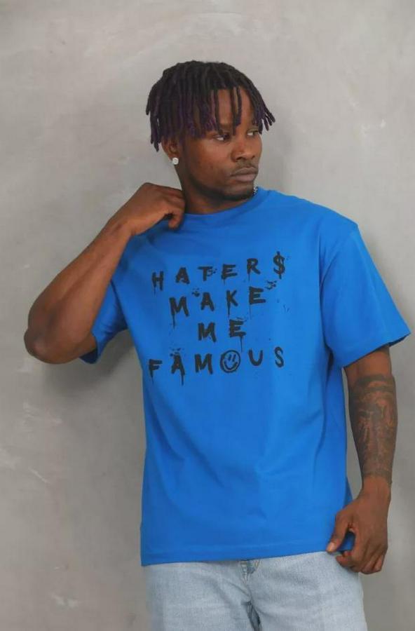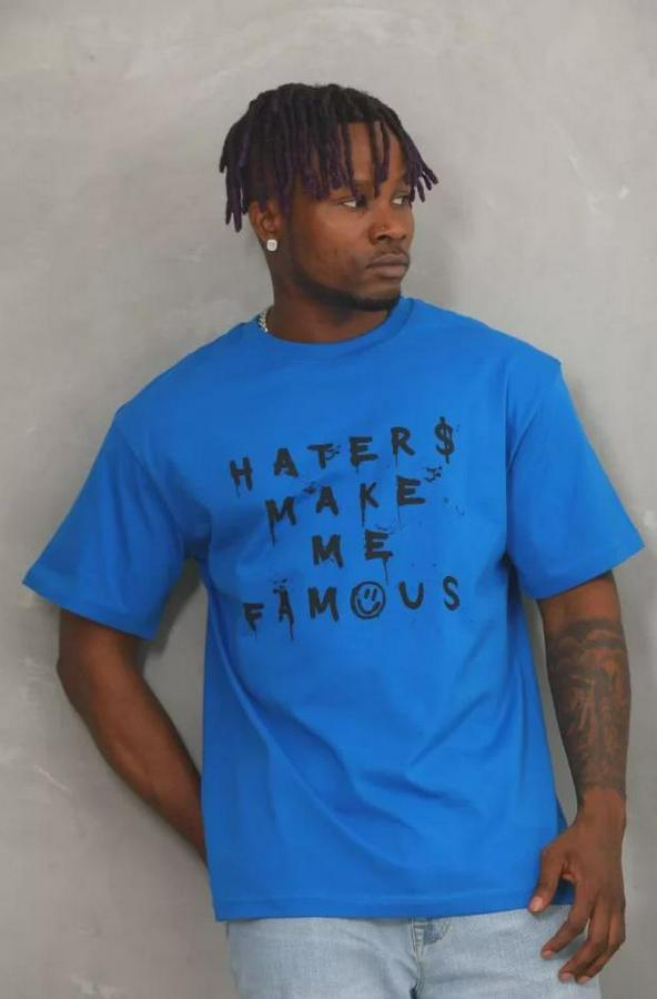 Unisex Oversize Baskılı Bisiklet Yaka T-Shirt - Mavi