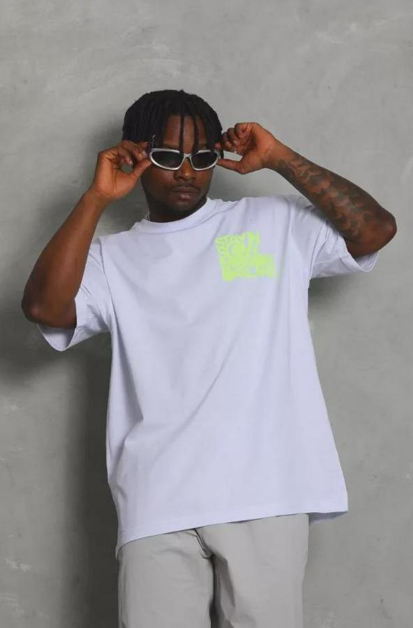 Unisex Oversize Baskılı Bisiklet Yaka T-Shirt - Beyaz