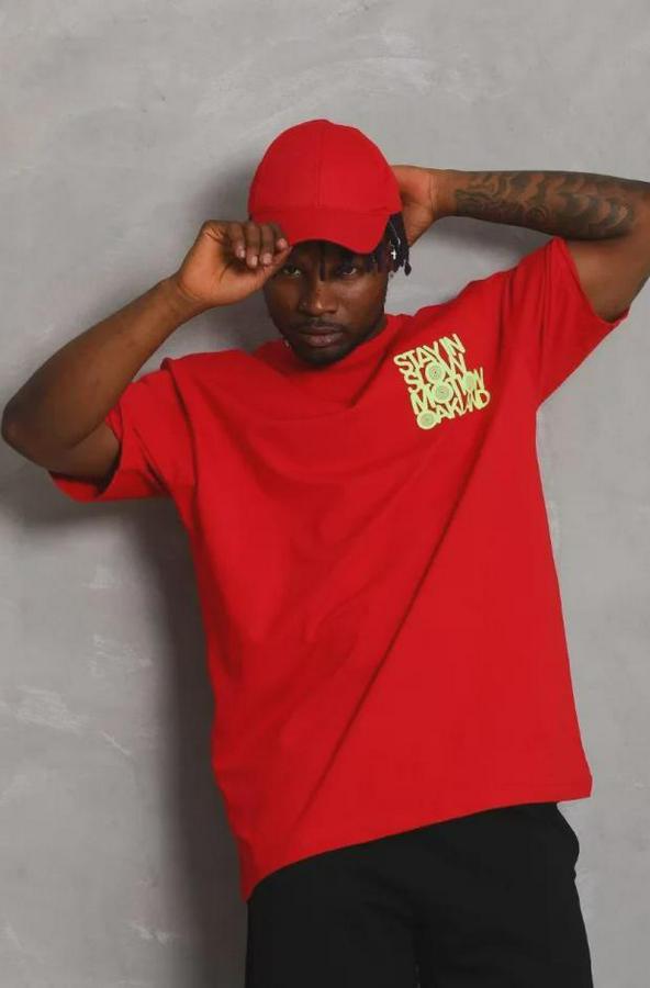 Unisex Oversize Baskılı Bisiklet Yaka T-Shirt - Kırmızı