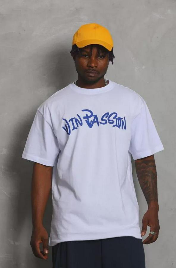 Unisex Oversize Baskılı Bisiklet Yaka T-Shirt - Beyaz