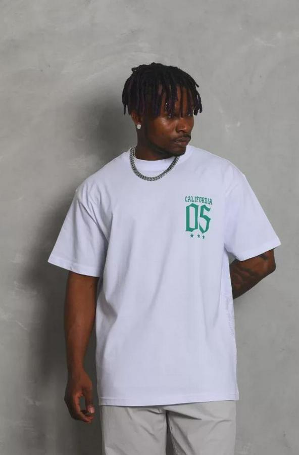 Unisex Oversize Baskılı Bisiklet Yaka T-Shirt - Beyaz