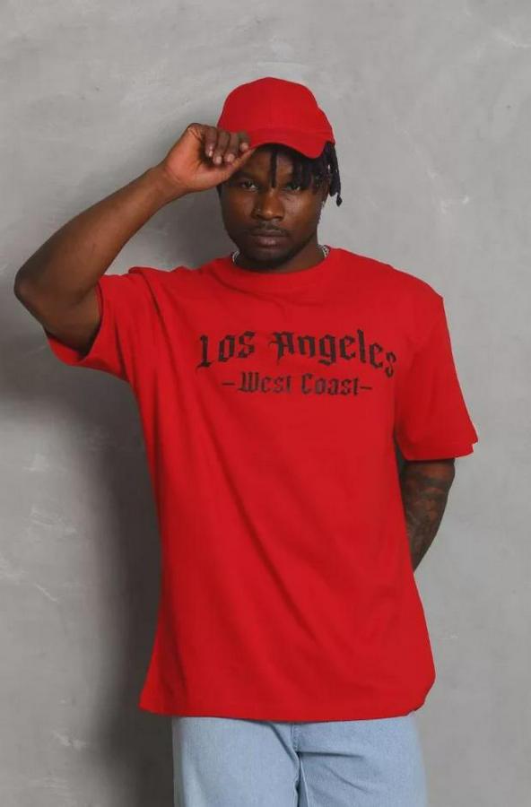 Unisex Oversize Baskılı Bisiklet Yaka T-Shirt - Kırmızı