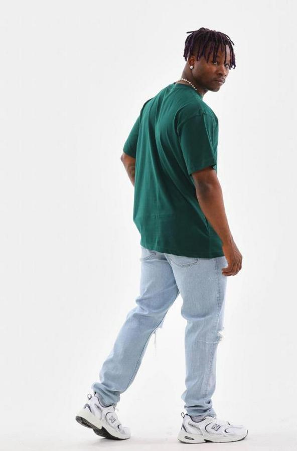 Unisex Oversize Düz Bisiklet Yaka T-Shirt - Koyu Yeşili