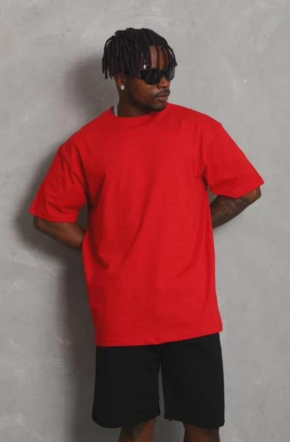 Unisex Oversize Düz Bisiklet Yaka T-Shirt - Kırmızı
