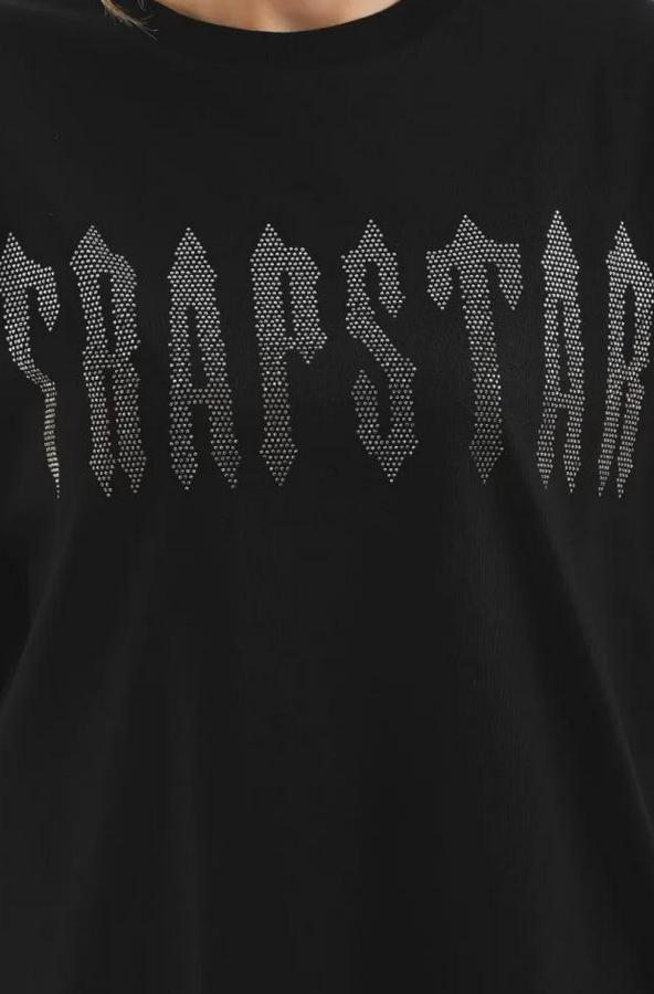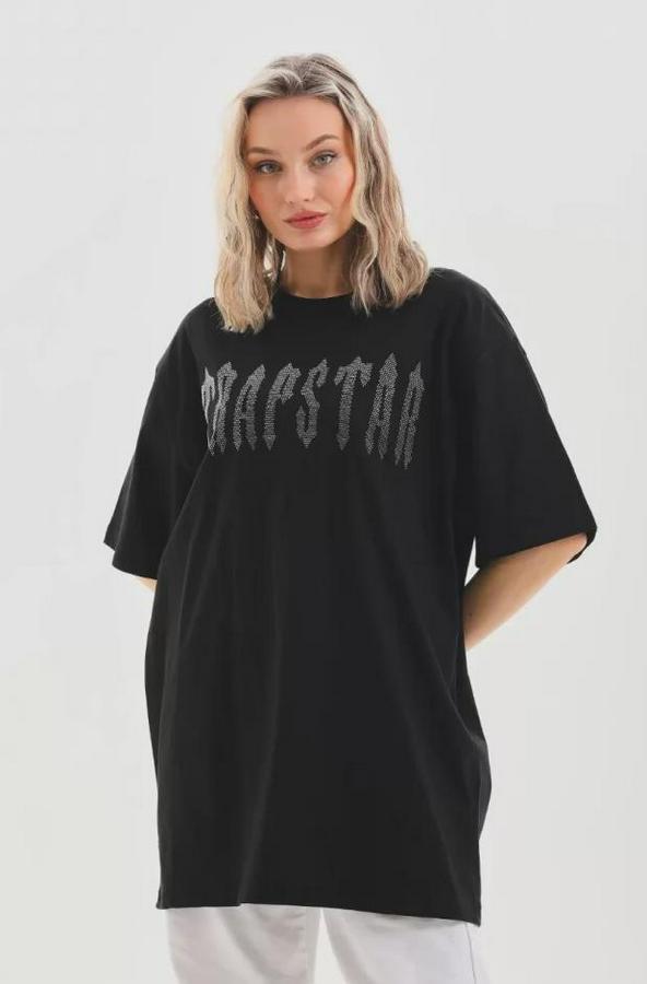 Unisex Taş Desenli Oversize T-Shirt - Siyah