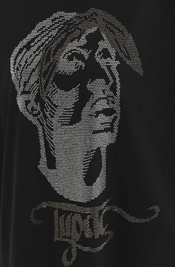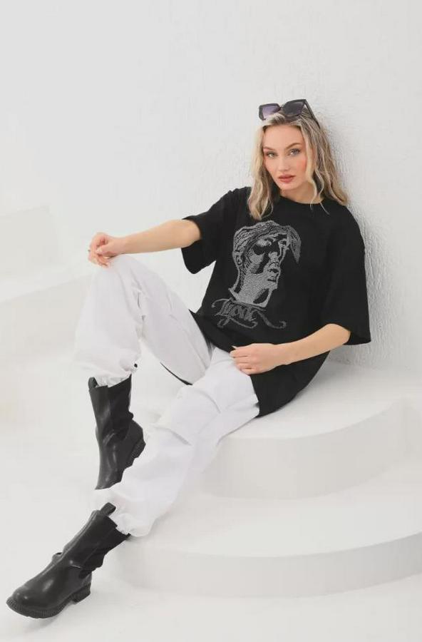 Unisex Taş Desenli Oversize T-Shirt - Siyah