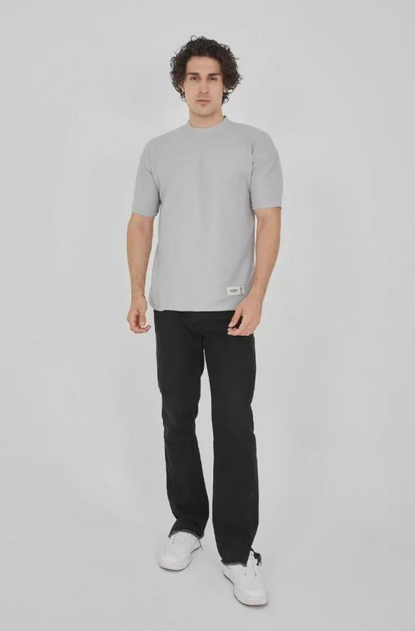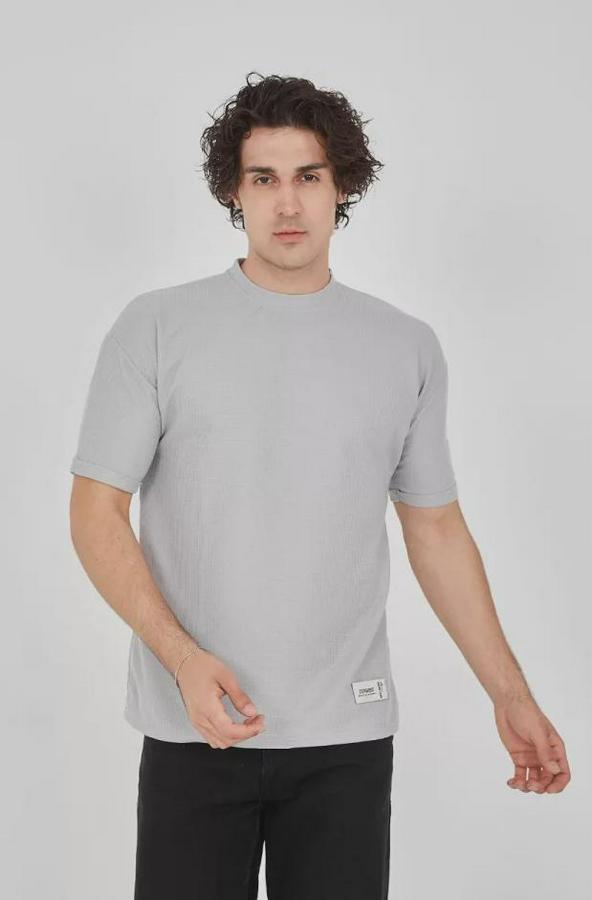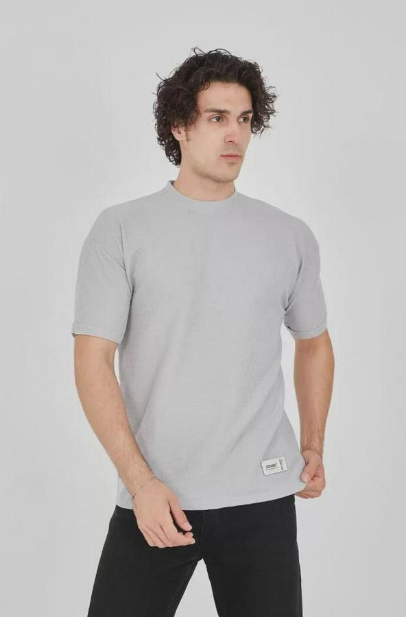 Unisex Waffle Kumaş Rahat Kol T-Shirt - Boyalı Gri