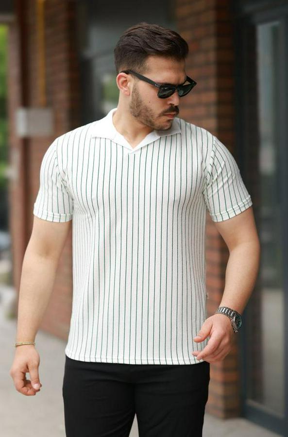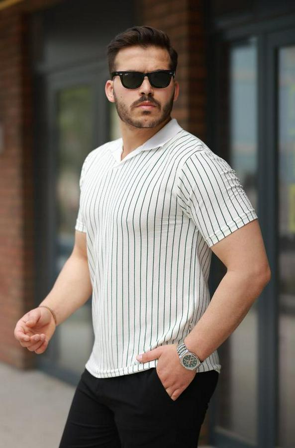 Erkek Yakalı çizgi Desenli Kısa Kollu Tişört