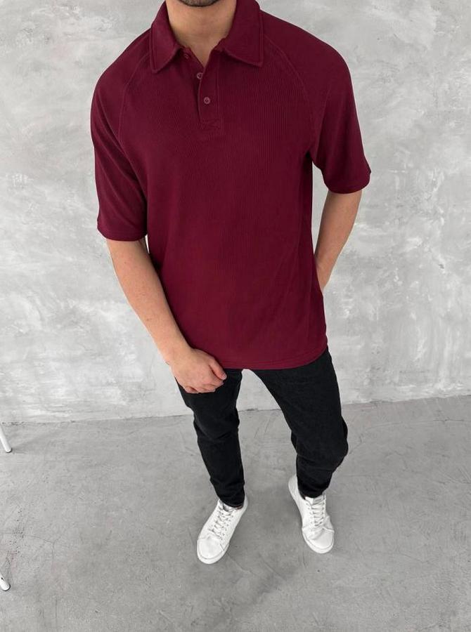 Yakalı Patlı Kısa Kol T-shirt - Bordo