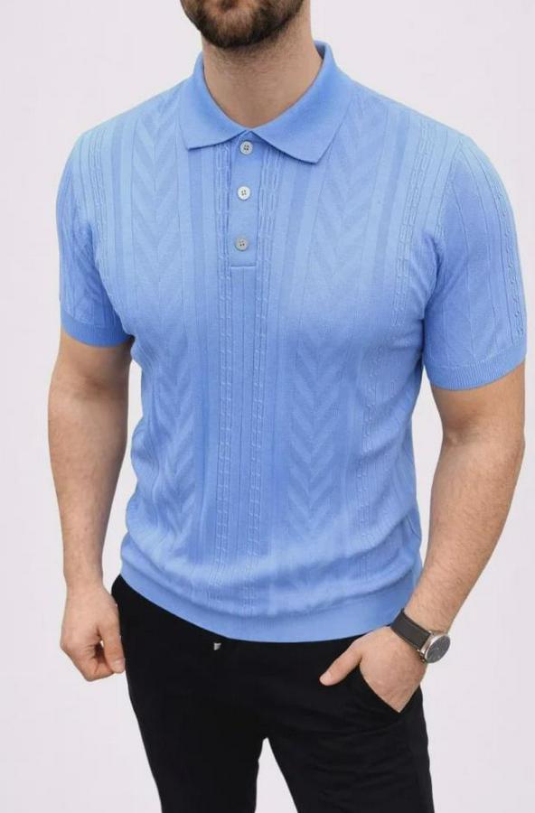Erkek Yazlık Triko Tişört Kısa Kol Polo Yaka Düğmeli T-Shirt - Bebek Mavisi