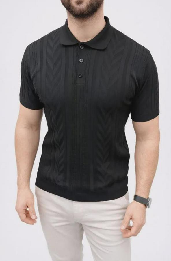 Erkek Yazlık Triko Tişört Kısa Kol Polo Yaka Düğmeli T-Shirt - Siyah